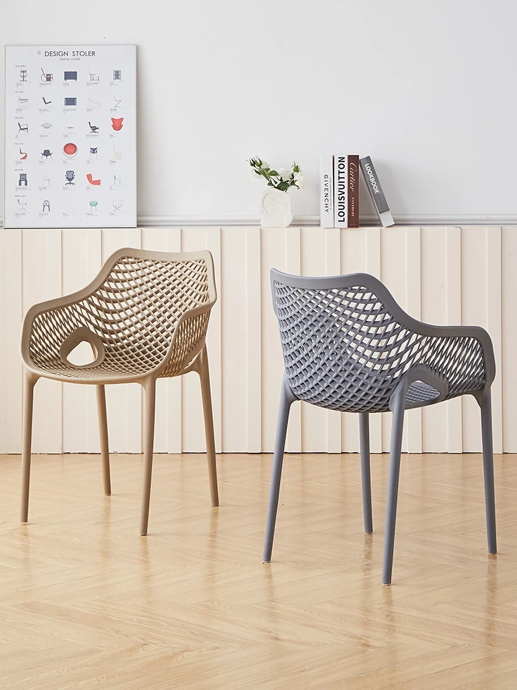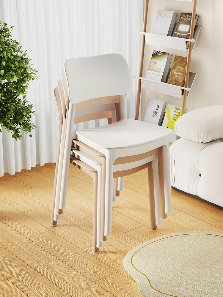 北欧風スタイルの高級プラスチック製ダイニングチェア - 背もたれ付きでスタッキング可能!おしゃれな家庭用・バルコニー用リラックスチェア。軽量で使いやすく、食卓を華やかに演出します!