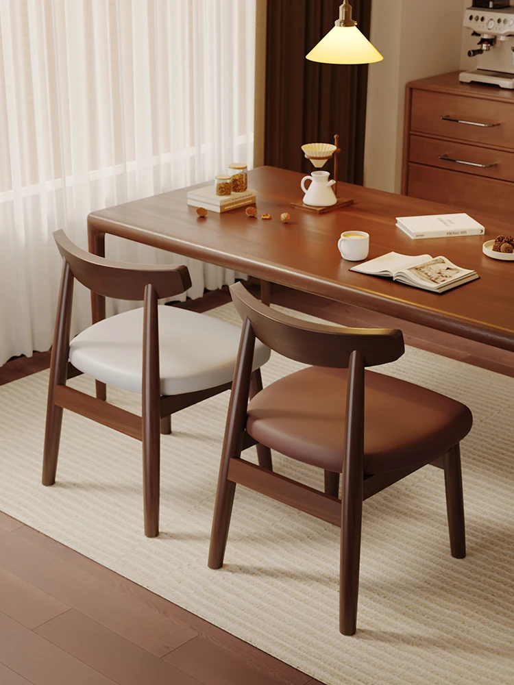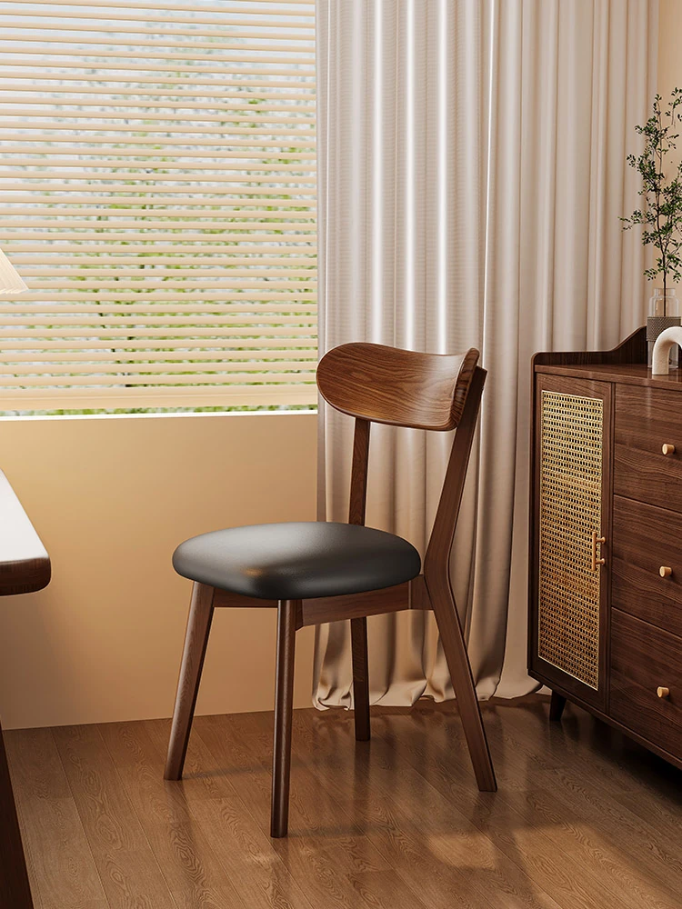 木の温もりを感じる無垢材のダイニングチェア|レトロなブラックウォールナットのデザイン|居心地の良い背もたれ付き|食卓や書斎、ティーテーブルにも最適|あなたのホームスタイルを格上げ!