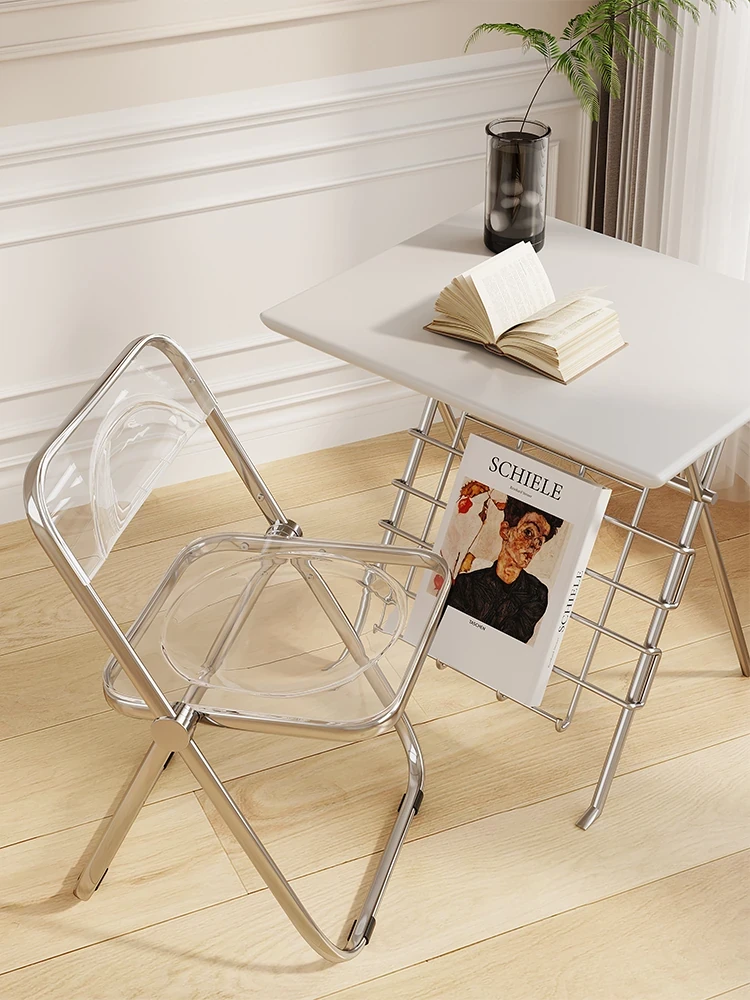 透明アクリル製・折りたたみチェア|おしゃれな寮用・インスタ映え間違いなし!快適な座り心地で、空間を華やかに演出!