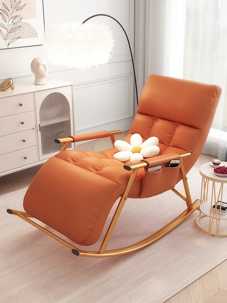 Trendy Rocking Chair for Adults – Sleep-Friendly Single Lazy Sofa, Perfect for Living Room & Balcony Relaxation, Stylish Comfy Recliner for Leisure Moments.