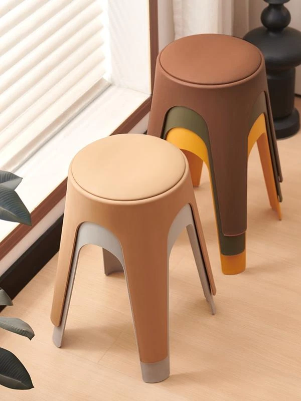 Durable and Stackable Plastic Stool for Home Use – Thickened Design, Comfortable Upholstered Seat, Ideal as a Modern Minimalist Dining Bench or Extra Seat for Any Room