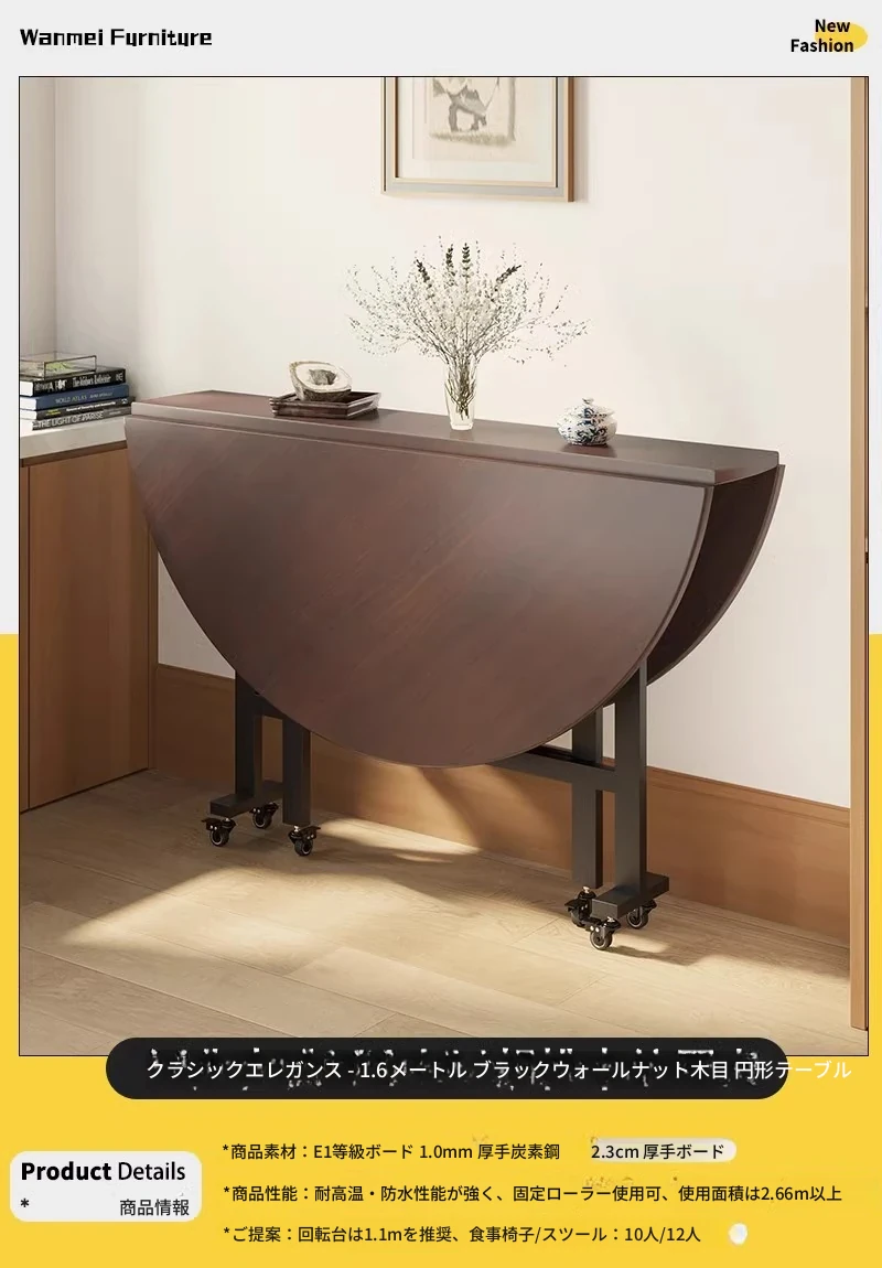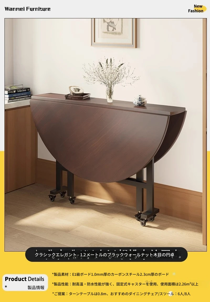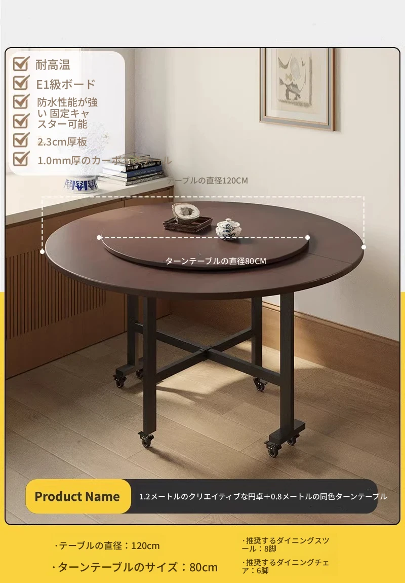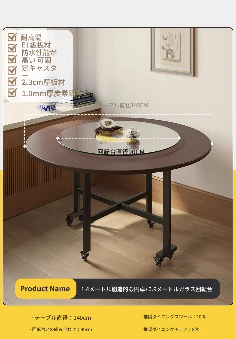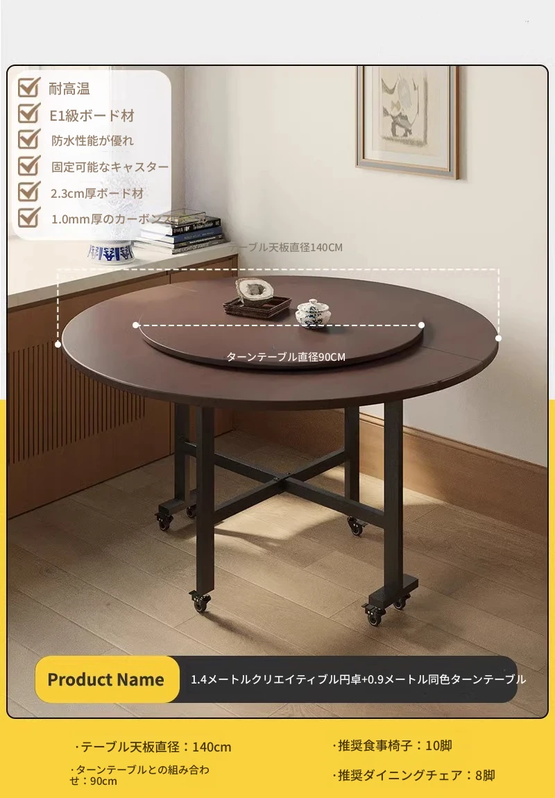 折りたたみ式ダイニングテーブル|小型住宅に最適|多機能&簡単に移動可能|10人用の大きな円形テーブル|おしゃれなリビングにぴったり!