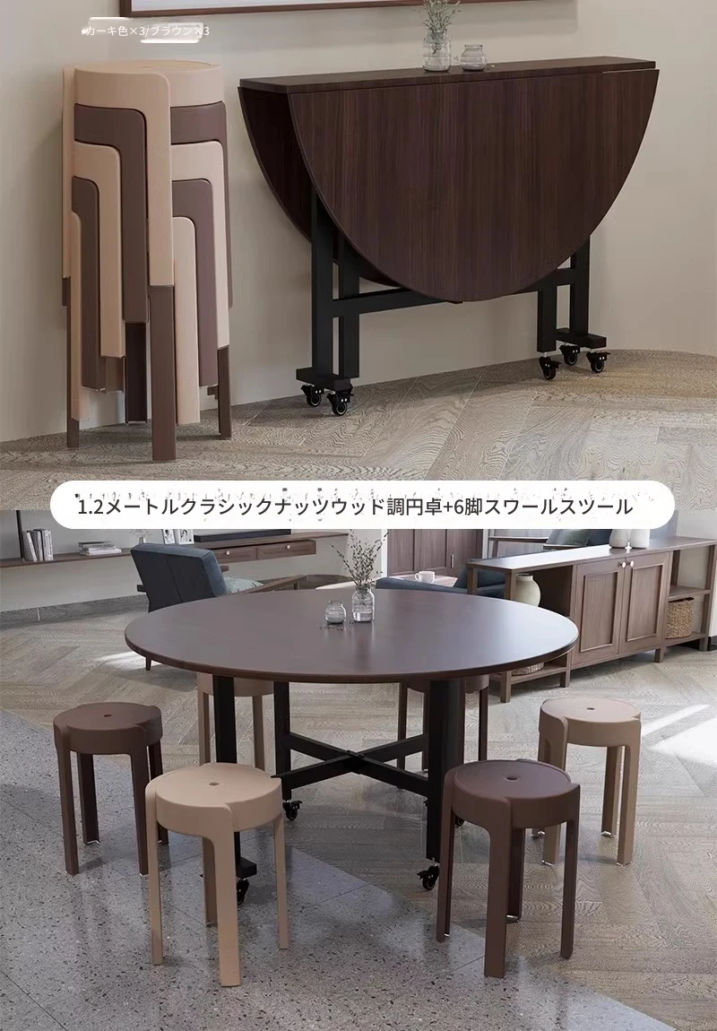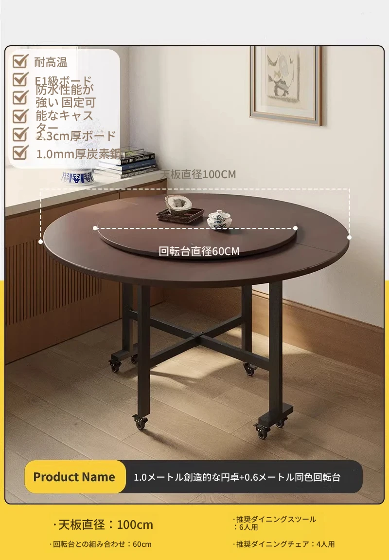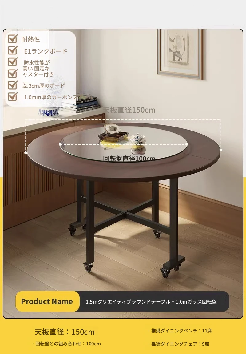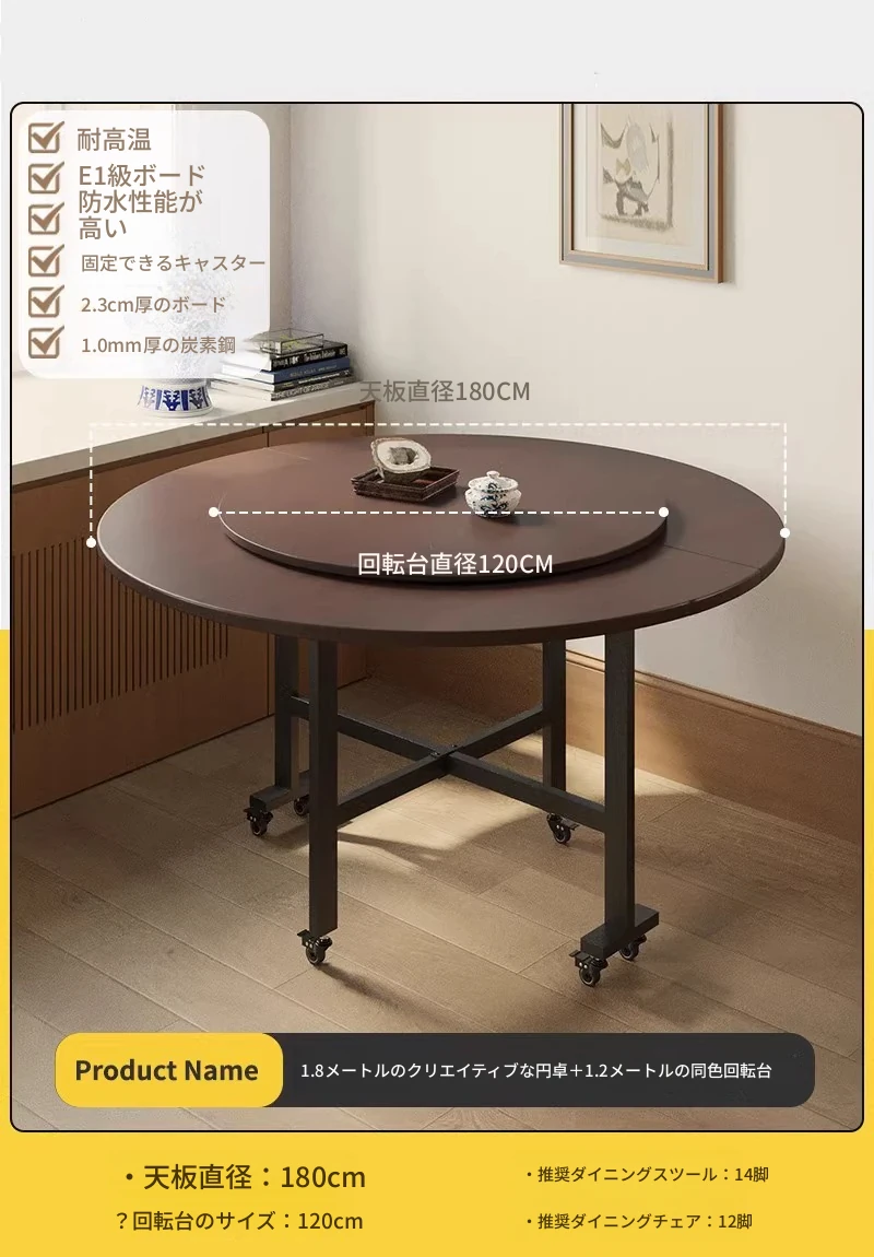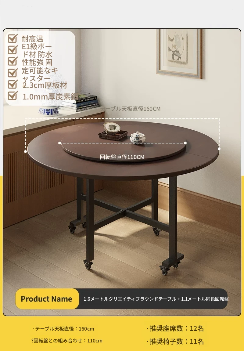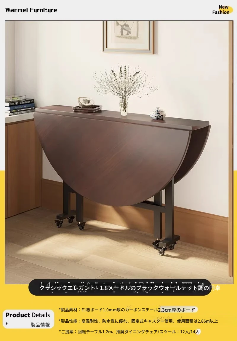 折りたたみ式ダイニングテーブル|小型住宅に最適|多機能&簡単に移動可能|10人用の大きな円形テーブル|おしゃれなリビングにぴったり!