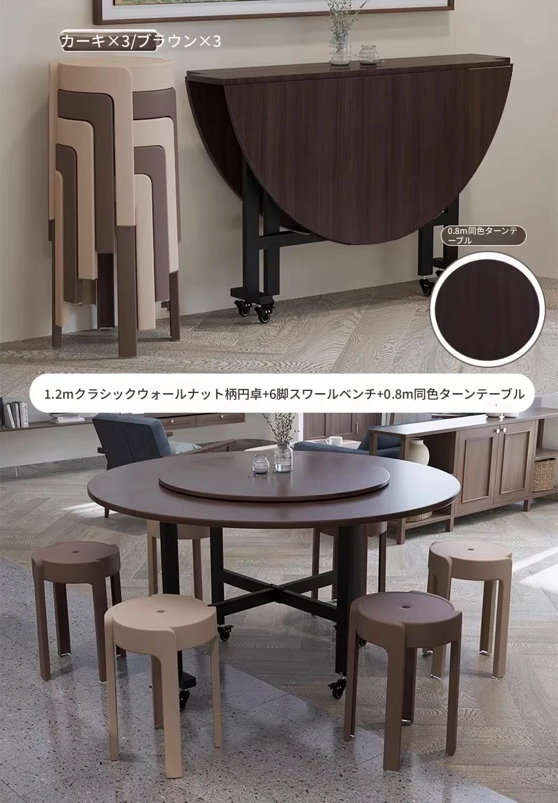 1.2ブラックウォールナット折りたたみ大円卓 + 0.8同色回転台 + 6脚風車チェア ★★★★★人気のコーディネート -- お得