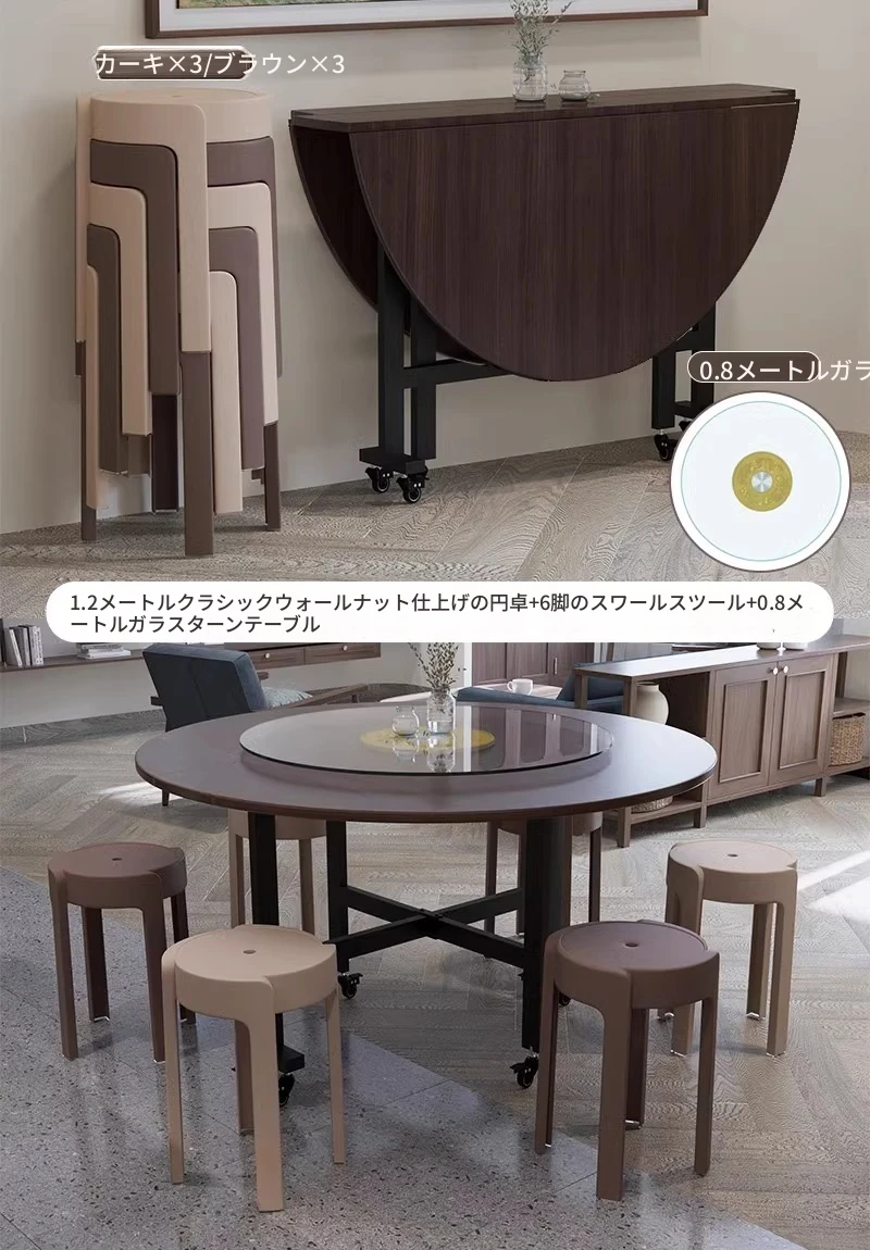 1.2メートル【ブラックウォールナット折りたたみ大丸テーブル】+0.8ガラスターンテーブル