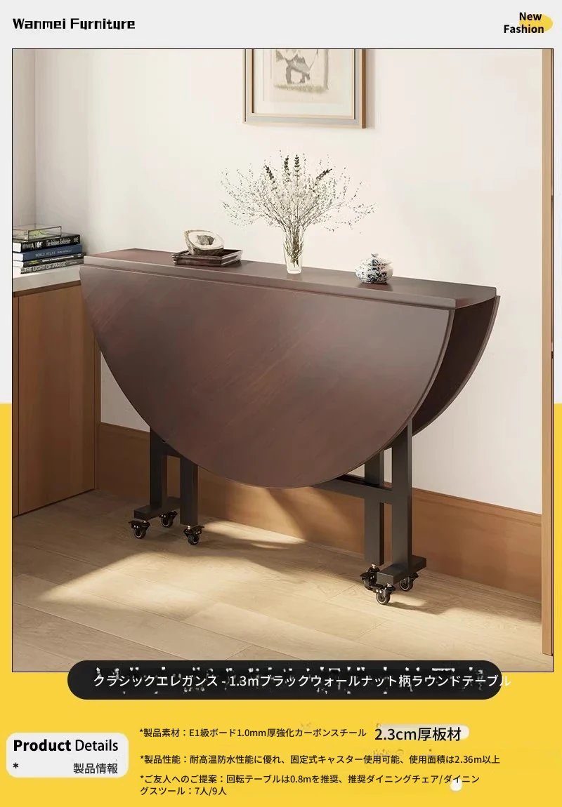 「ベストセラー」1.3m【ウォールナット折りたたみラウンドテーブル】〃クラシックでどんなスタイルにも合う 7-9人用★キャスター付き