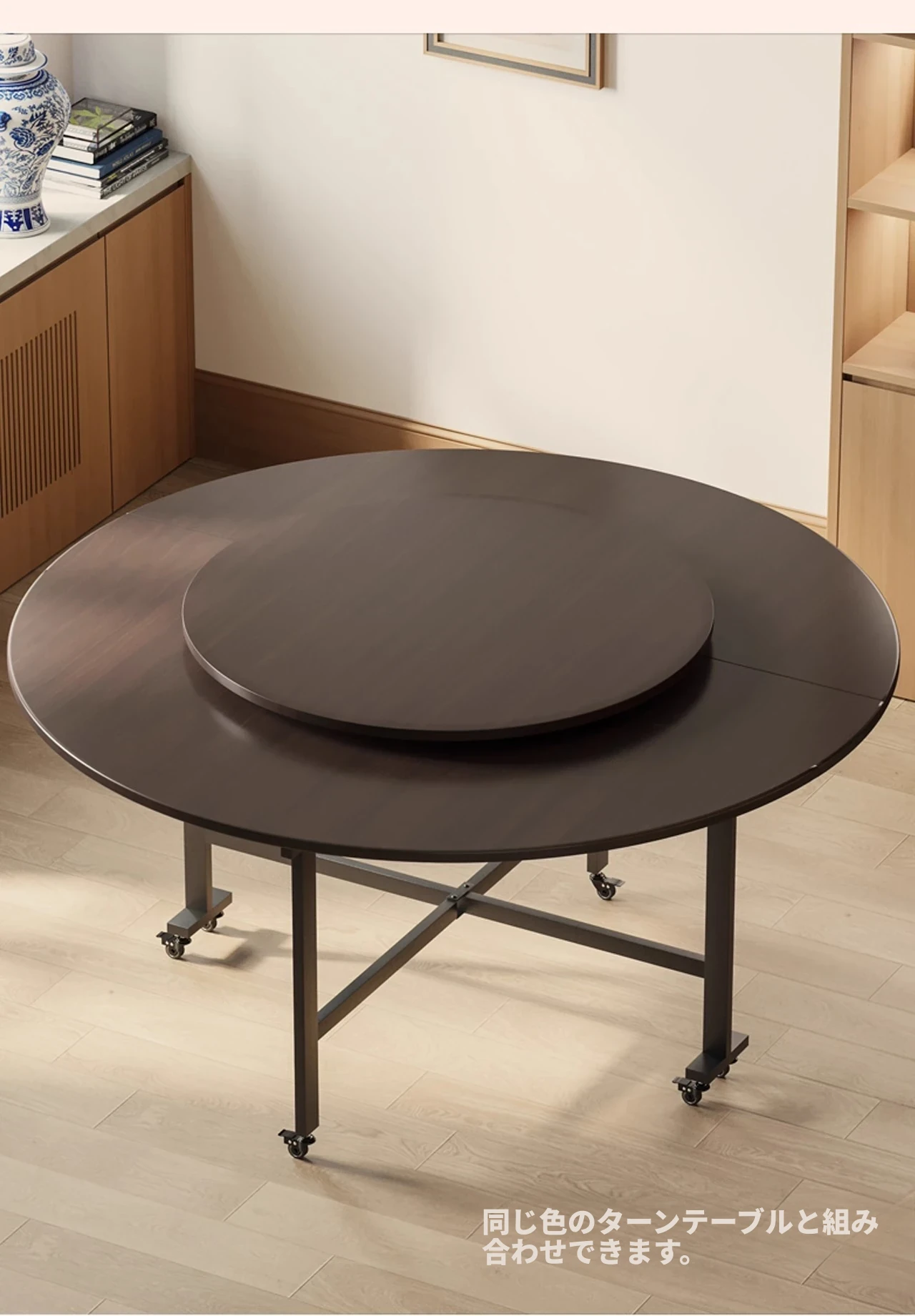 1.3メートル【ブラックウォルナット折りたたみ大丸テーブル】+0.8同色ターンテーブル