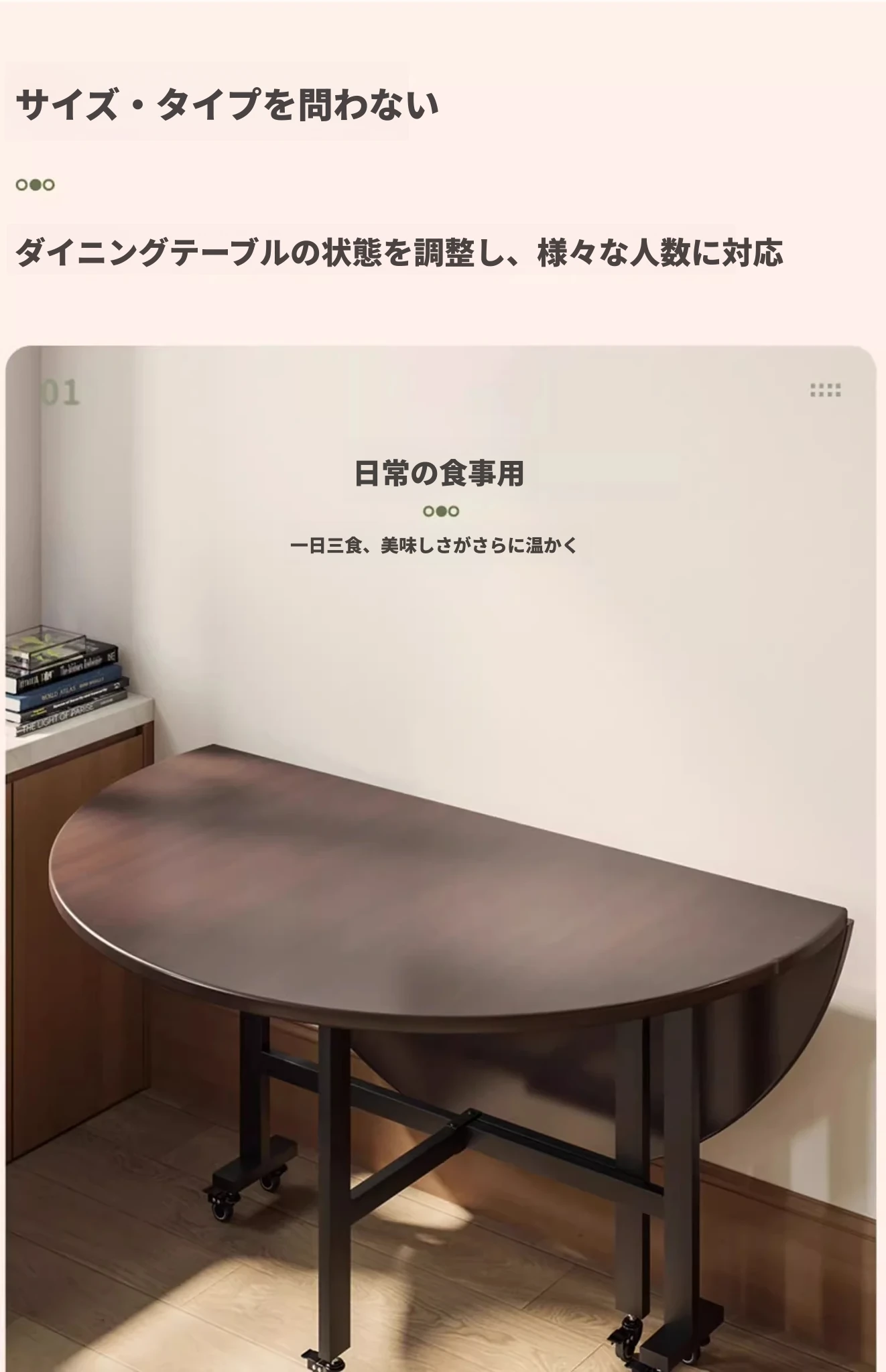 1.0メートル【多色から選択可能、カラーはお問い合わせください】4-6人用★キャスター付き