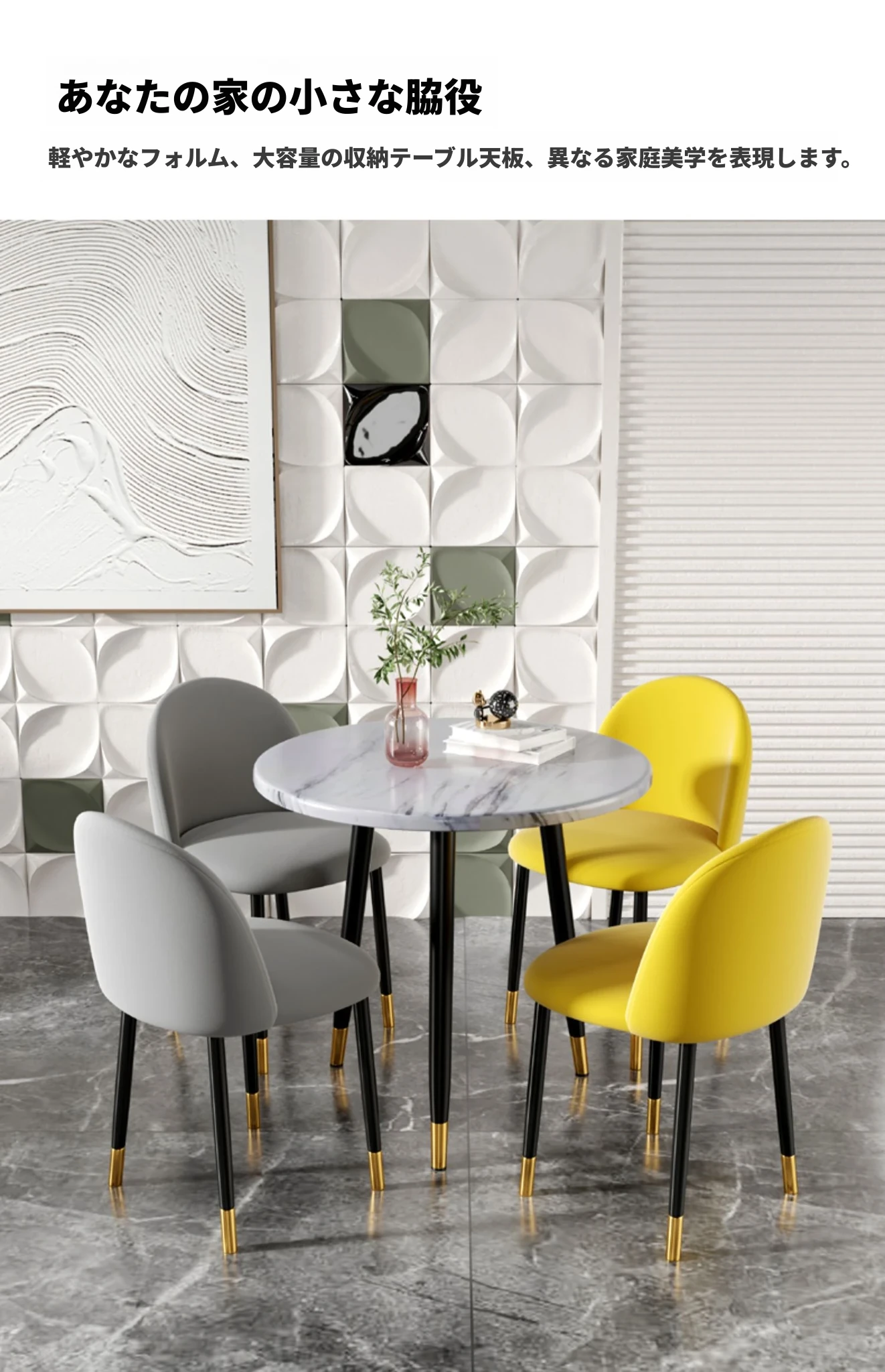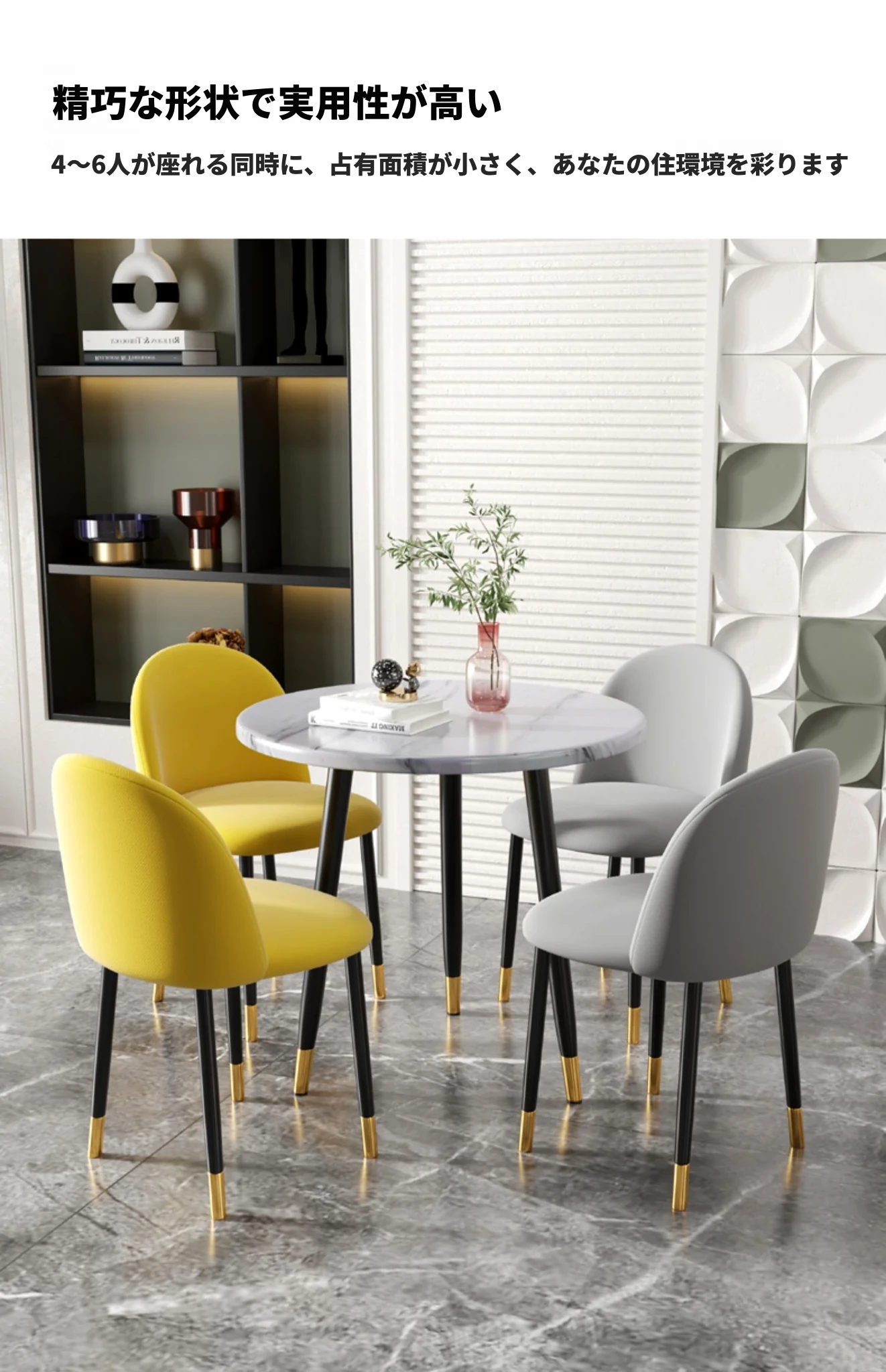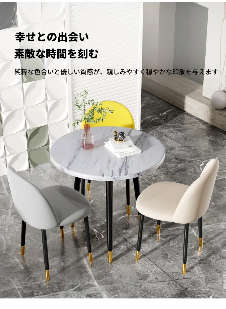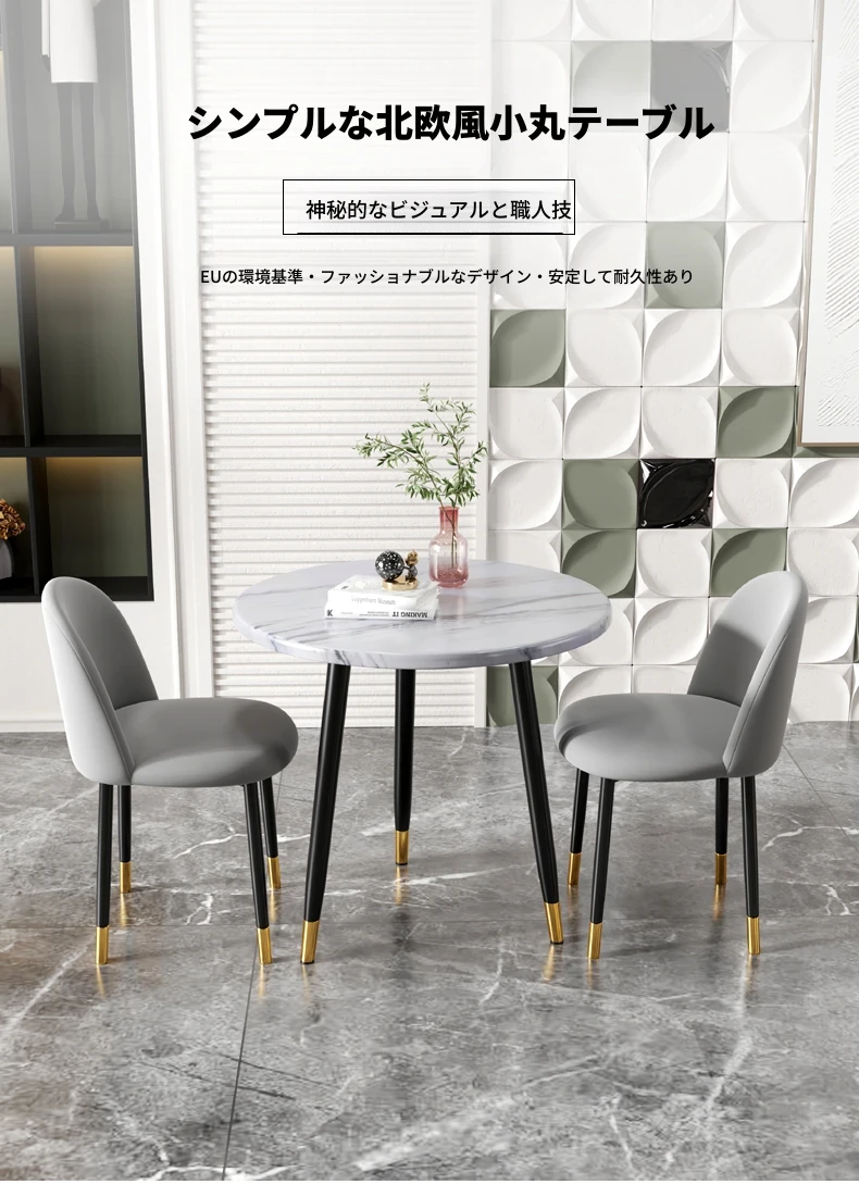 スタイリッシュな円形ダイニングテーブル|小型・家庭向け|モダンでミニマルなデザイン|軽奢感漂うお洒落なカフェスタイル|円形会議・接待用テーブル&チェアセット【価格以上の価値感】