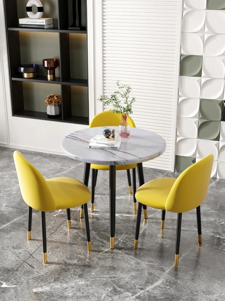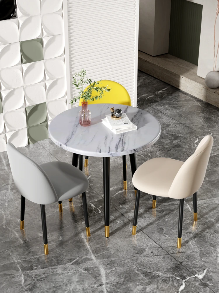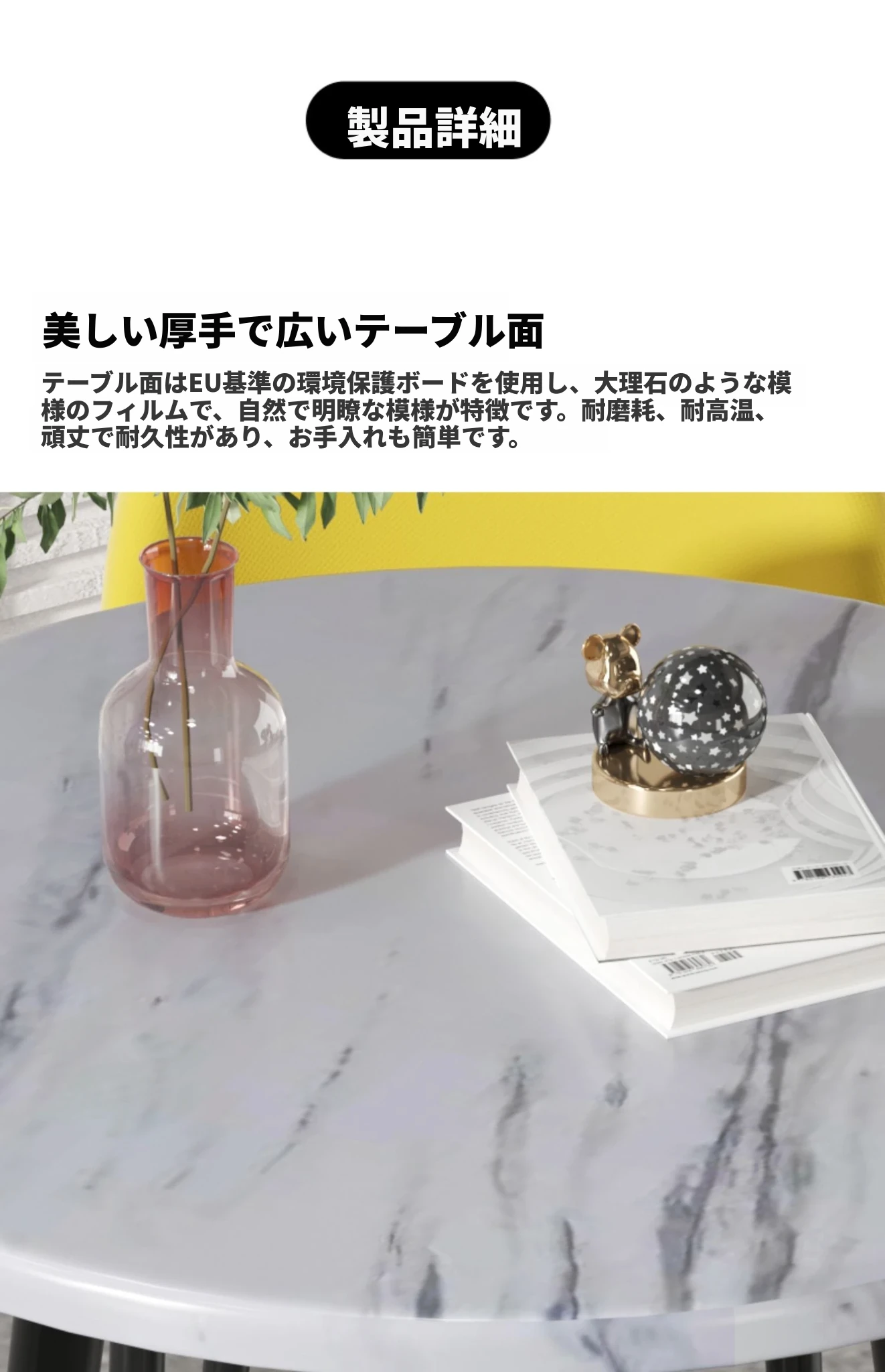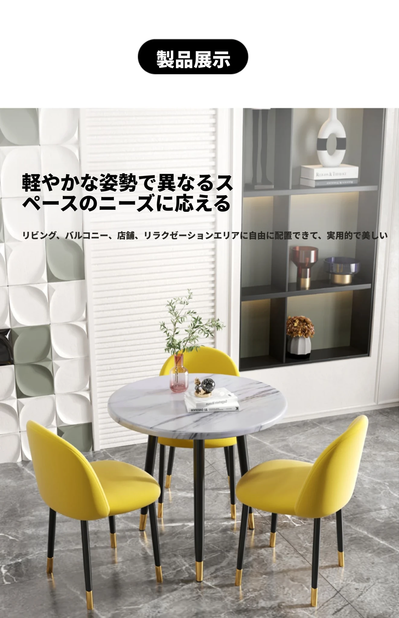スタイリッシュな円形ダイニングテーブル|小型・家庭向け|モダンでミニマルなデザイン|軽奢感漂うお洒落なカフェスタイル|円形会議・接待用テーブル&チェアセット【価格以上の価値感】