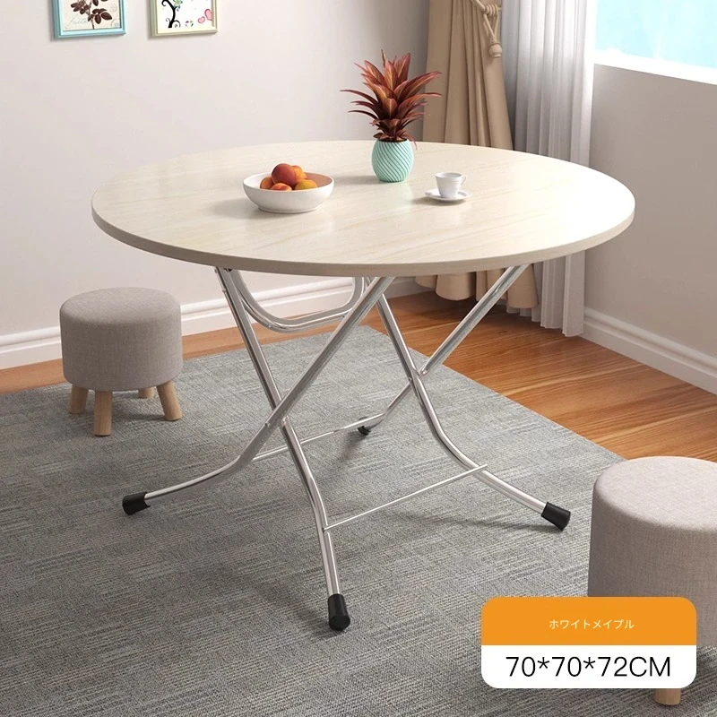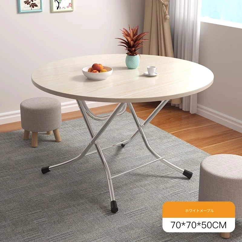 白メープルの色【70*70*50cm】丸テーブルლU型メッキ脚