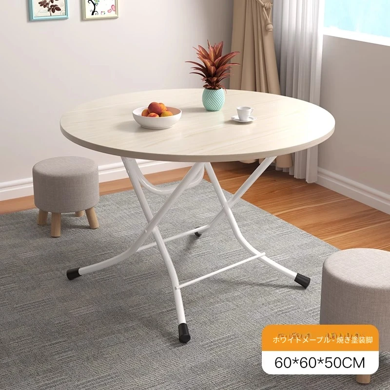 白メープルの色【60*60*50cm】丸テーブルლU型塗装脚