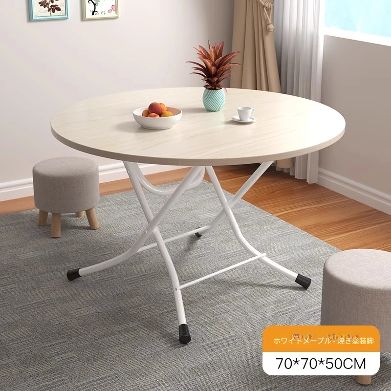 白メープルの色【70*70*50cm】丸テーブルლU型塗装脚