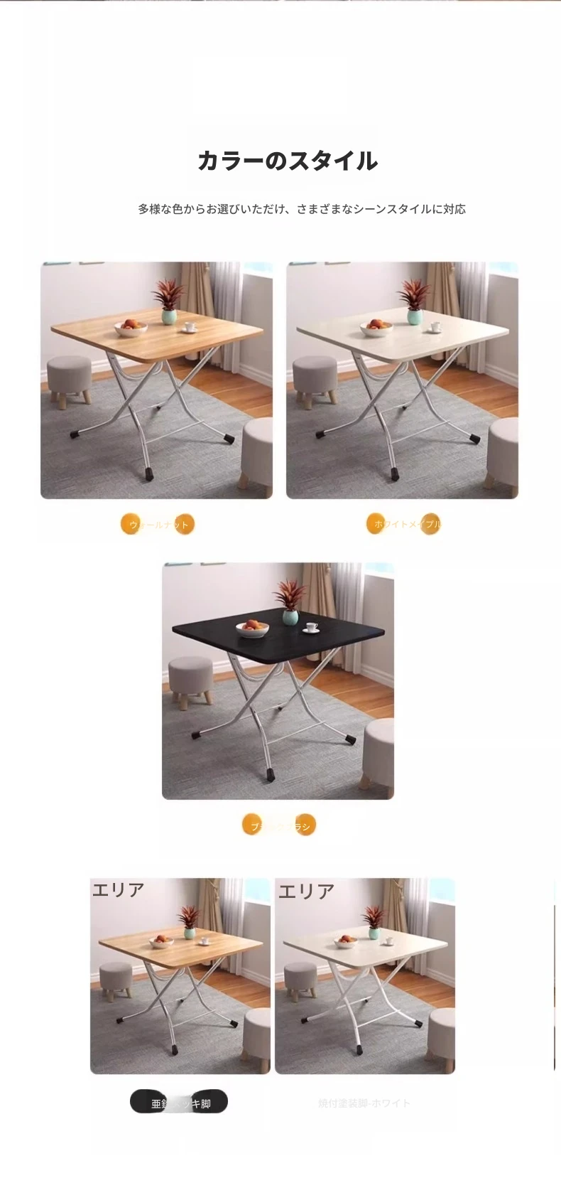 白メープルの色【60*60*72cm】角テーブルლU型メッキ脚