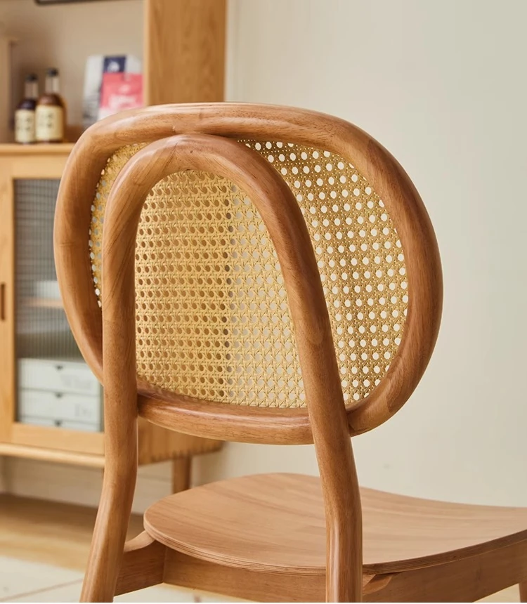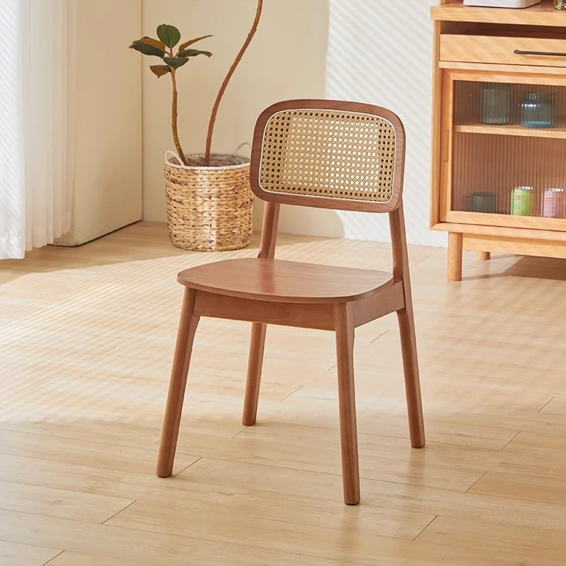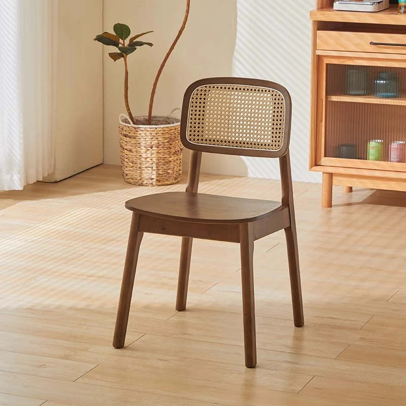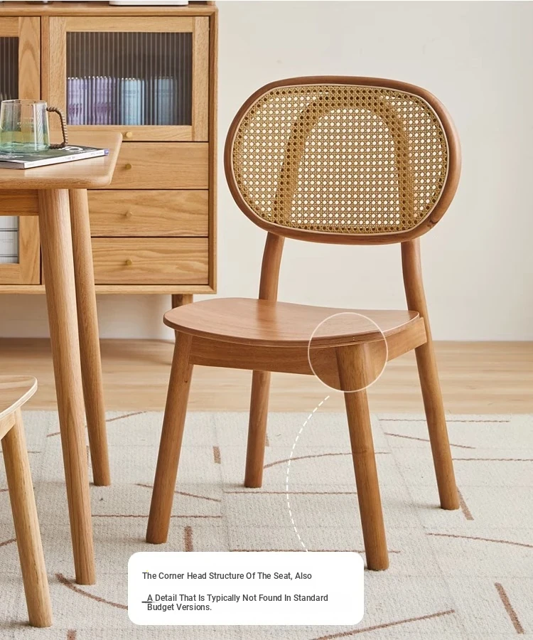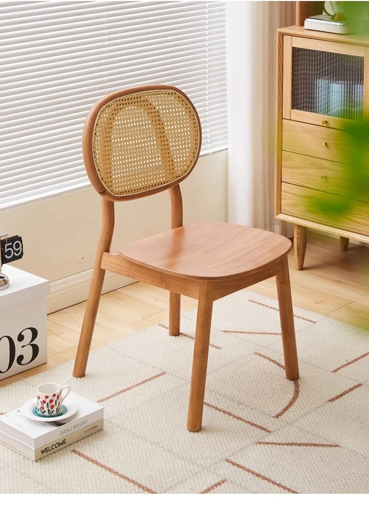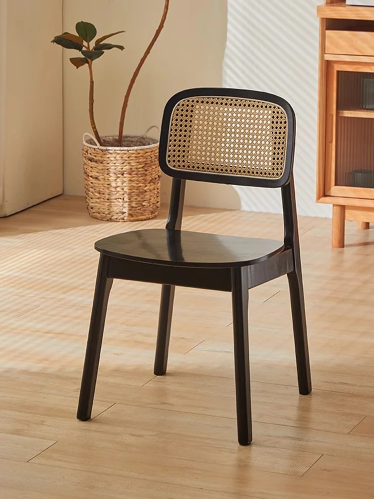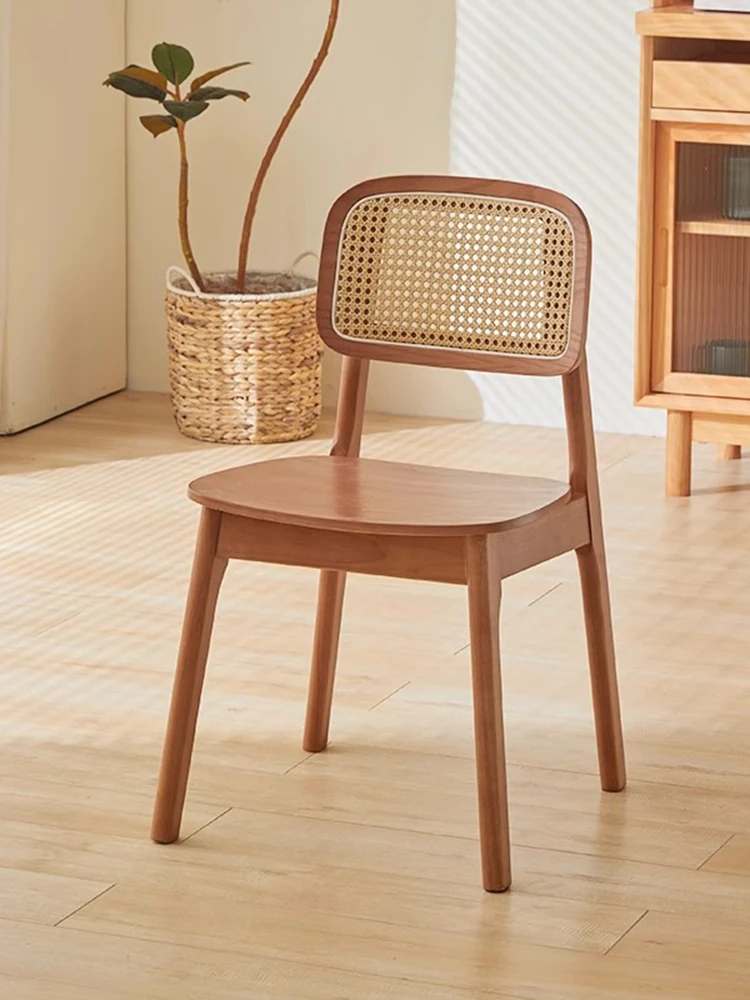 Solid Wood Dining Chair - Stylish Rattan Seat, Vintage-inspired with Backrest, Perfect for Home Dining and Tea Time. Embrace Wabi-Sabi Aesthetics with Our Elegant Host Chair. Ideal for Cozy Meals and Gatherings.