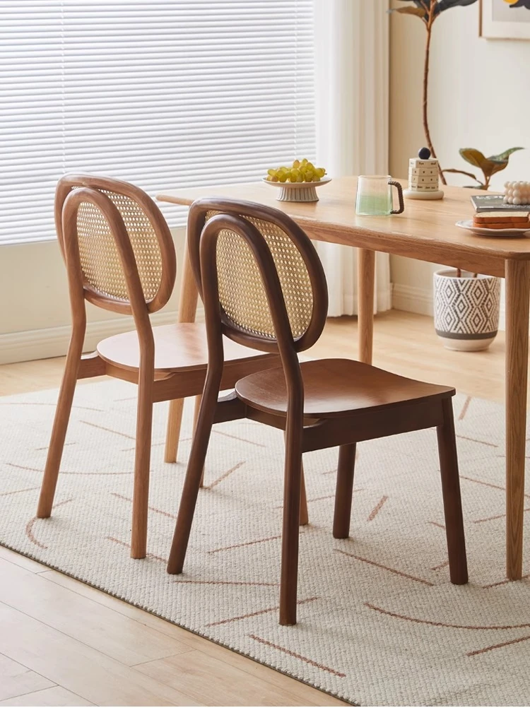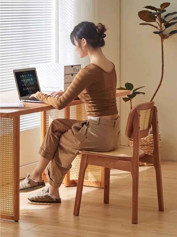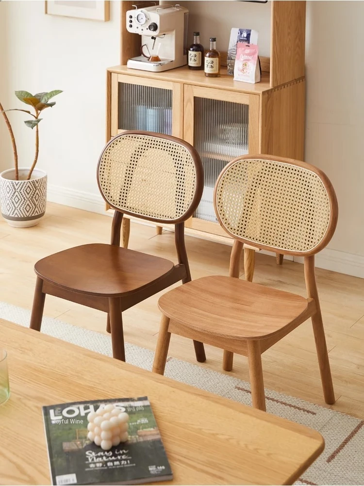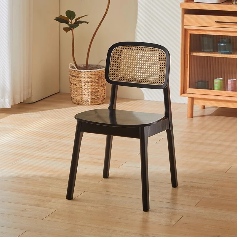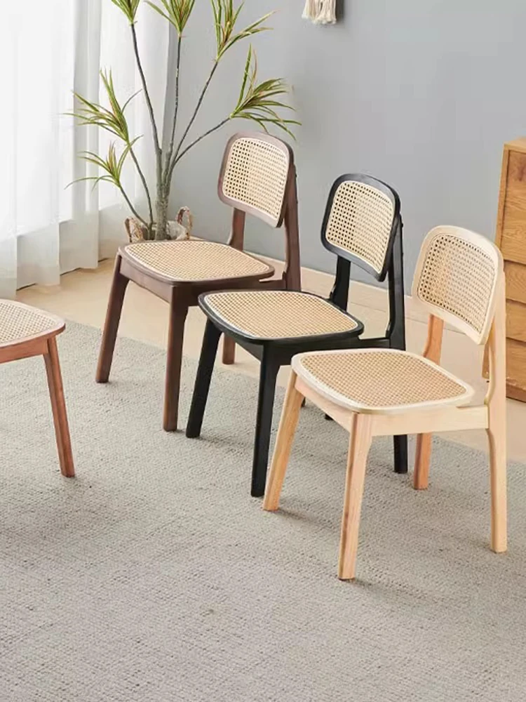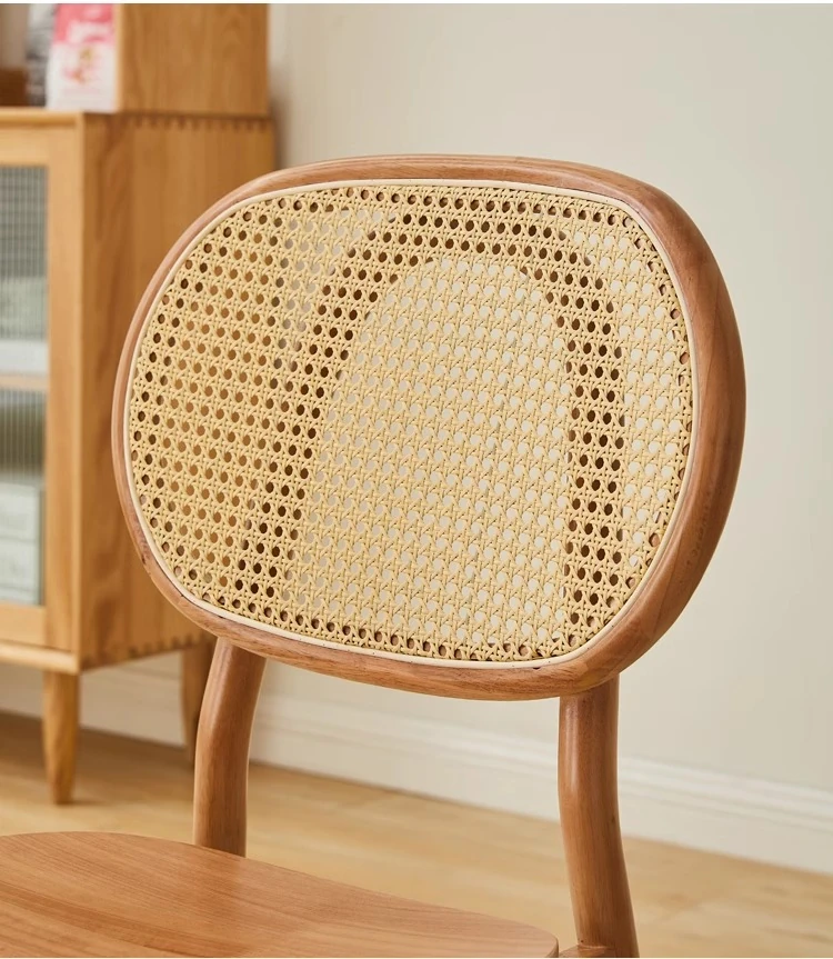 Solid Wood Dining Chair - Stylish Rattan Seat, Vintage-inspired with Backrest, Perfect for Home Dining and Tea Time. Embrace Wabi-Sabi Aesthetics with Our Elegant Host Chair. Ideal for Cozy Meals and Gatherings.