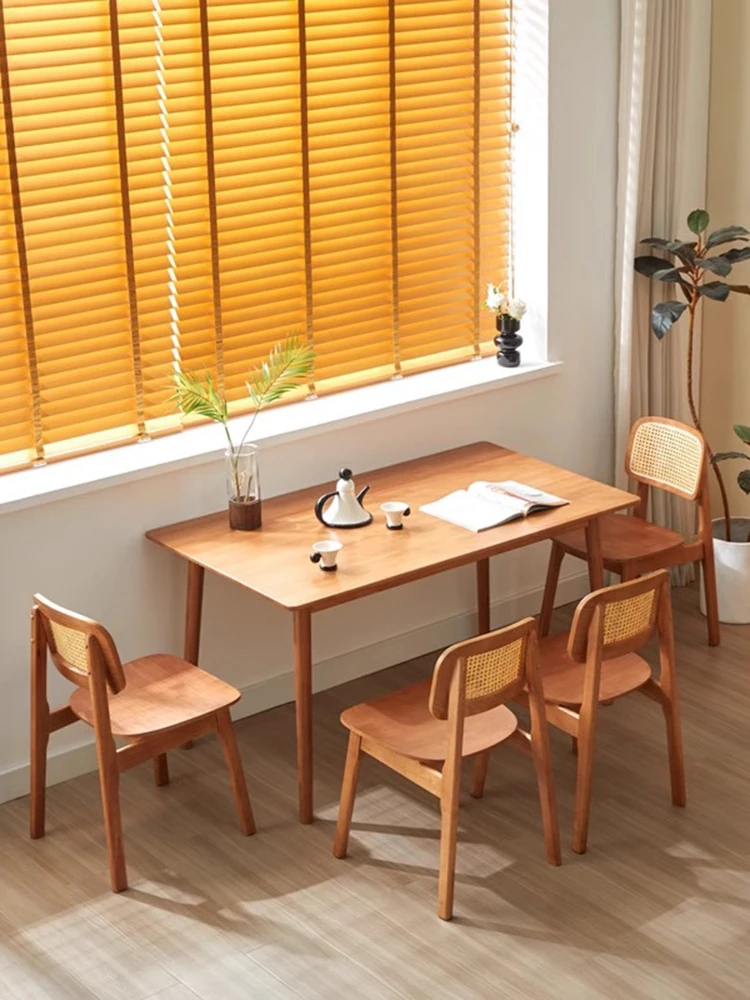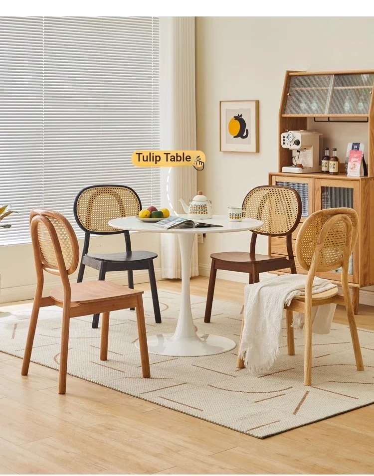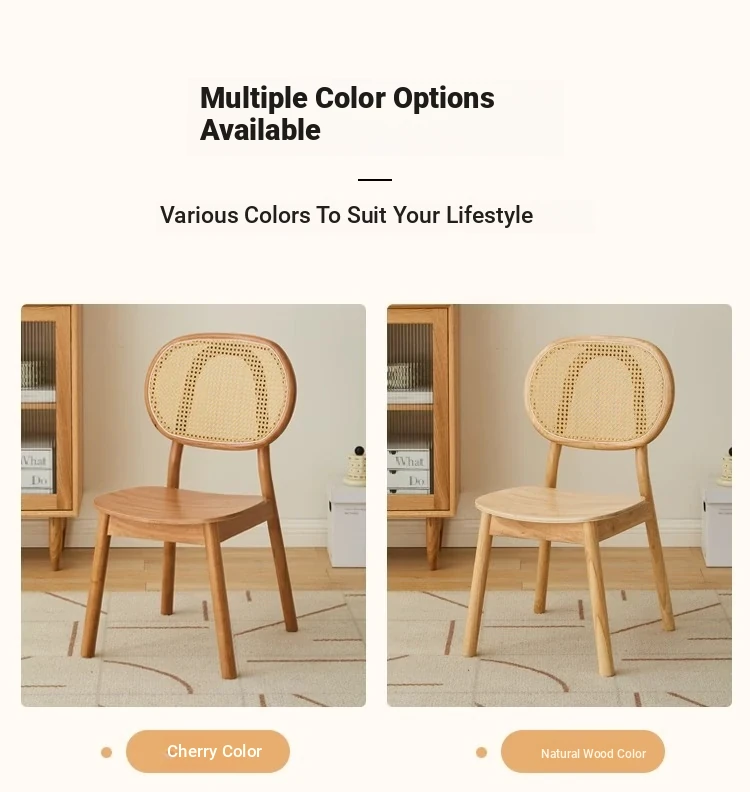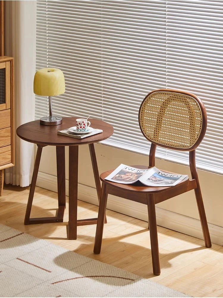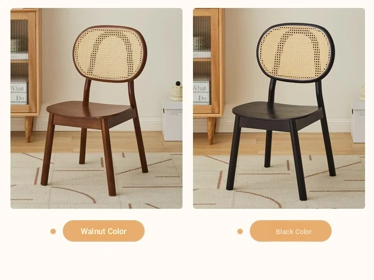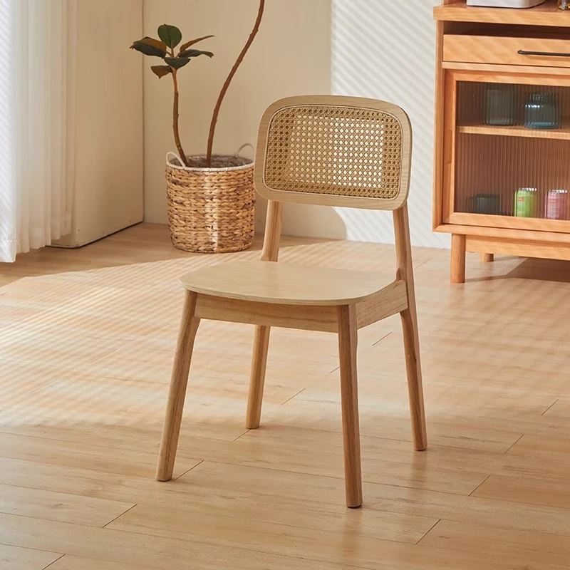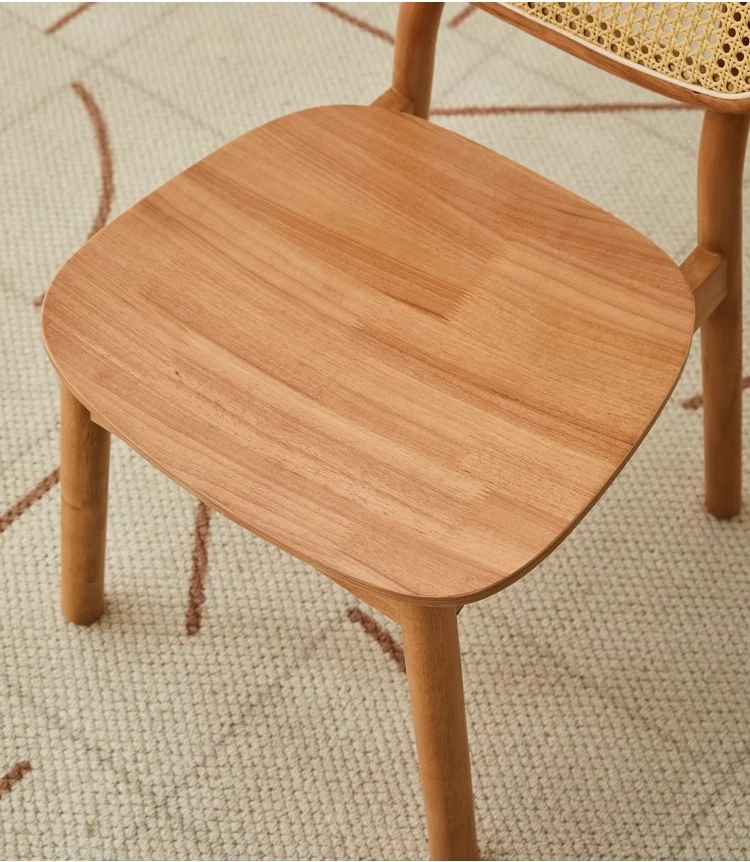 Solid Wood Dining Chair - Stylish Rattan Seat, Vintage-inspired with Backrest, Perfect for Home Dining and Tea Time. Embrace Wabi-Sabi Aesthetics with Our Elegant Host Chair. Ideal for Cozy Meals and Gatherings.
